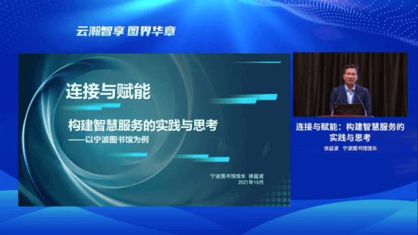 宁波图书馆馆长徐益波的报告题目为《连接与赋能:构建智慧服务的实践与思考》。徐益波馆长介绍了宁波图书馆开展智慧服务的现状,并就公共图书馆未来如何深化智慧服务,表达了观点与建议。