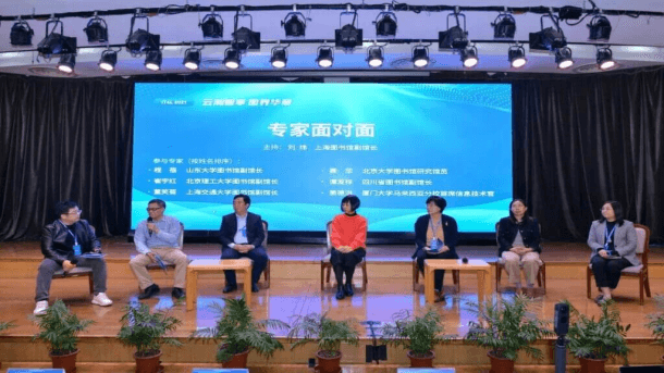 北京大学图书馆研究馆员聂华、厦门大学马来西亚分校首席信息技术官萧德洪、山东大学图书馆副馆长程蓓、北京理工大学图书馆副馆长崔宇红、上海交通大学图书馆副馆长董笑菊、四川省图书馆副馆长谭发祥上台与刘炜馆长围绕“中国图书馆界面临的最大挑战是什么”、“如何推进下一代服务平台的应用”、“如何解决痛点与难点”几个话题进行观点切磋,并与台下的观众进行了互动。