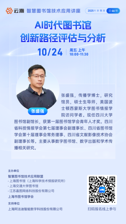 张盛强《AI时代图书馆创新路径评估与分析》——“智慧图书馆技术应用讲座”2025年第11期(总第46期) 张盛强《AI时代图书馆创新路径评估与分析》——“智慧图书馆技术应用讲座”2025年第11期(总第46期)