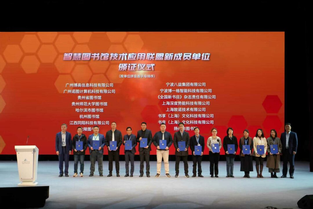 上午的开幕式上,上海图书馆徐强副馆长和上海交通大学图书馆程金华馆长为新加入智慧图书馆技术应用(云瀚)联盟的16家新成员单位和13位专家颁发证书和聘书。