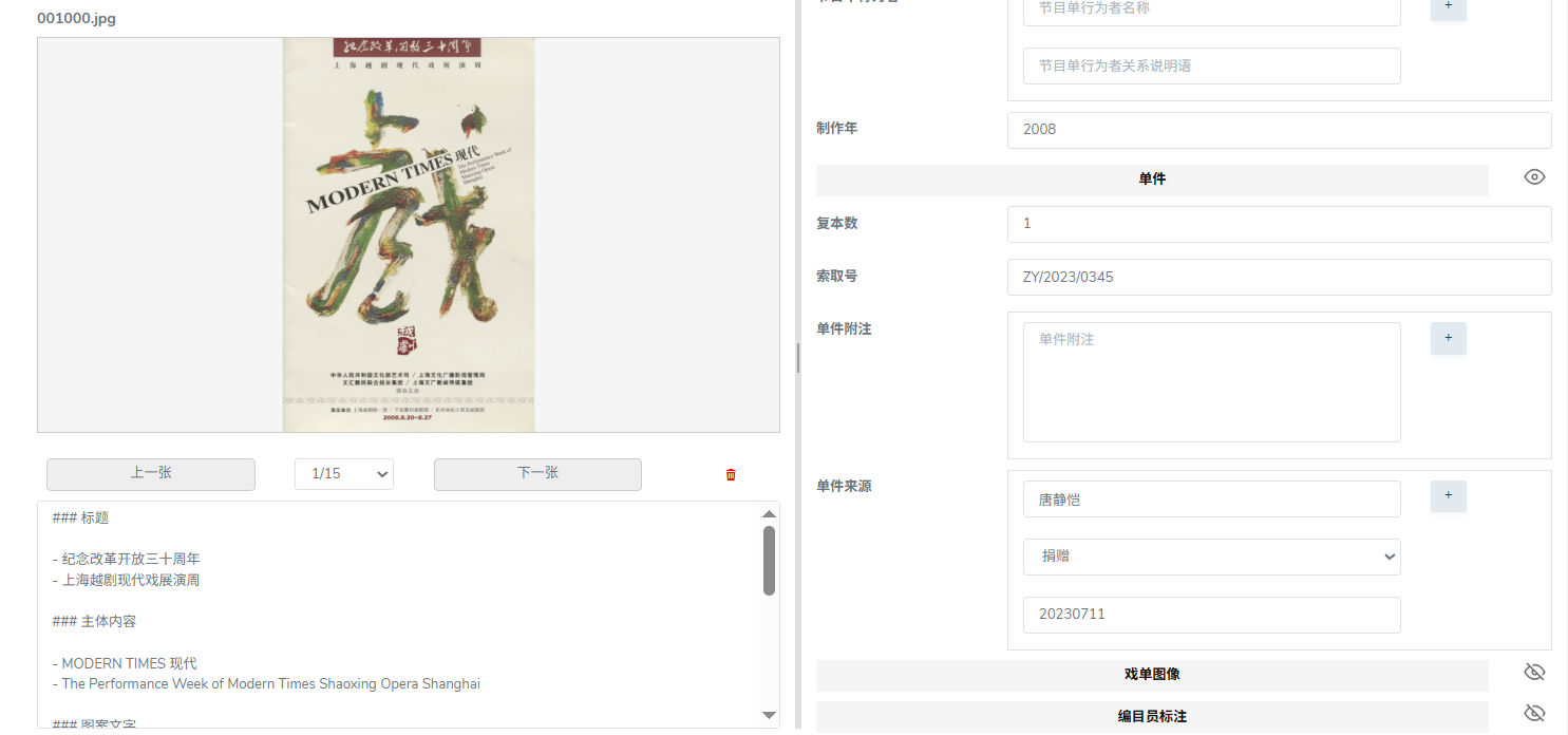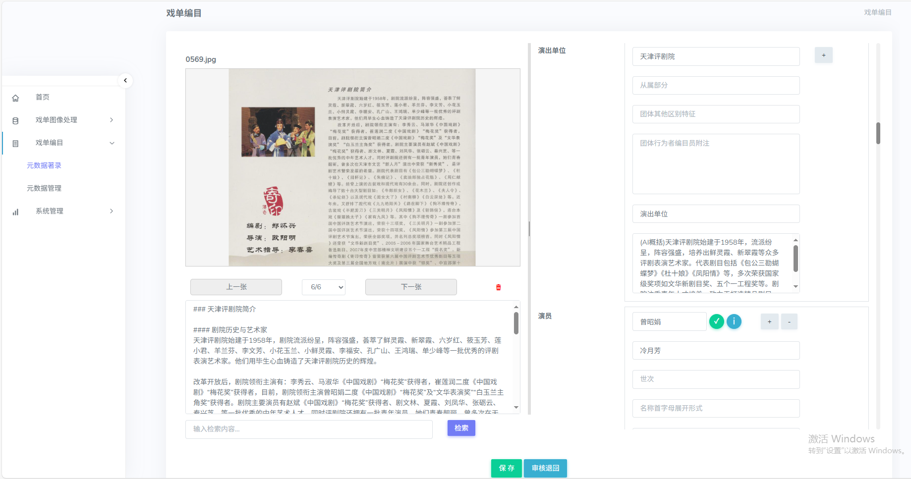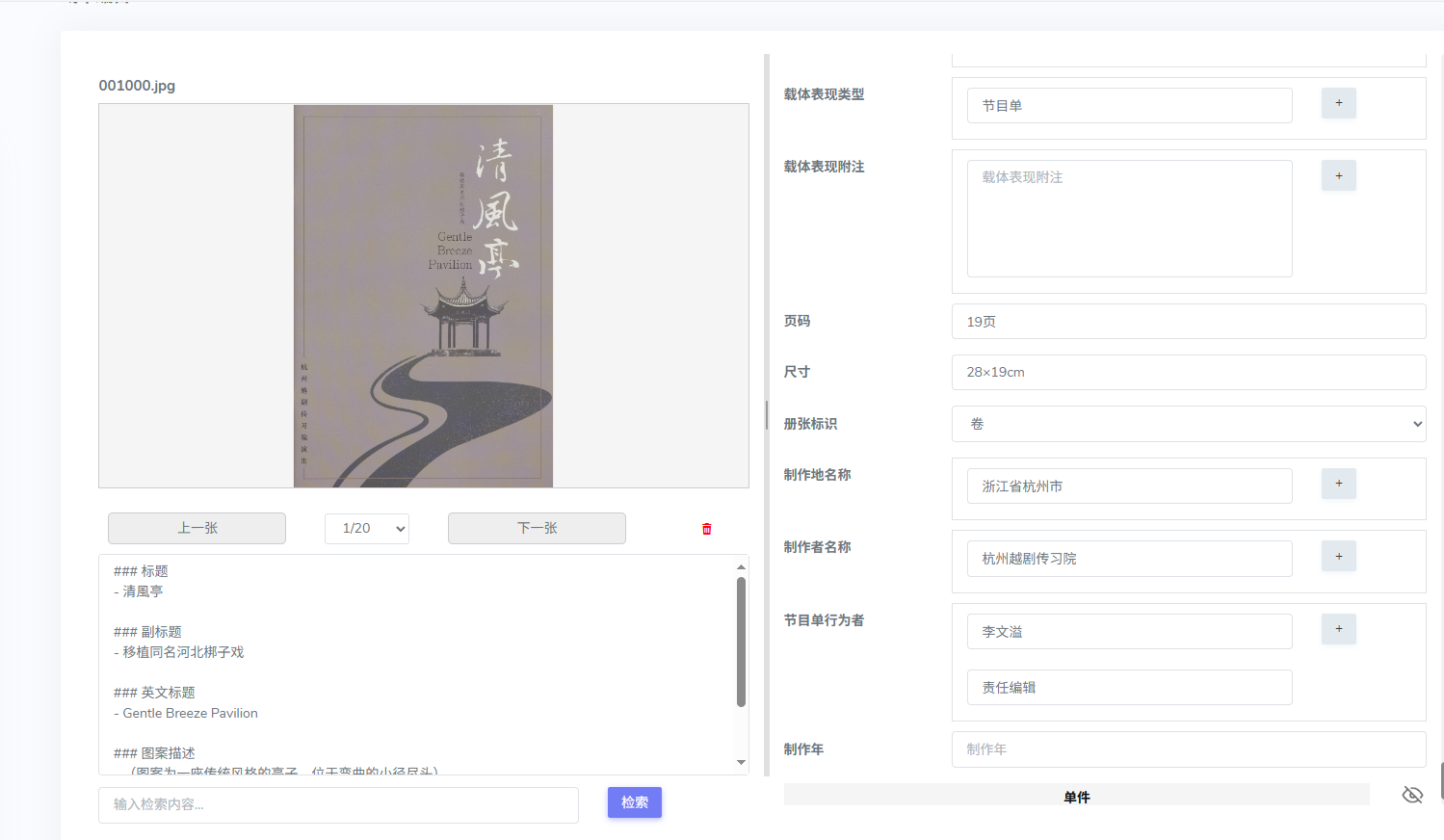 戏单自动编目平台是上海图书馆在特藏文献加工领域的一次前沿探索,也是人工智能赋能知识组织的重要实践。近年来,上图馆藏收录了约2000份戏单,内容涵盖剧目、演员、演出场地与年代等丰富信息,是研究中国戏曲史与社会文化史的重要资料。然而,传统MARC编目模式无法揭示其中的知识网络,手工编目亦耗时低效,成为数字化利用的瓶颈。为此,项目团队确立了将戏单从“孤立文献”转化为“知识网络”的目标,并构建了“AI编目+人工审校”的全流程加工模式。项目一方面通过设计戏单领域本体,初步实现了从“描述性编目”到“语义编目”的转型;另一方面依托多模态大模型、提示词工程与分步抽取流程,突破了图文混排文献自动信息抽取的难题。在此基础上,搭建了戏单审校平台,实现人机协同与批量化处理,使编目效率提升超100%。截至2025年7月,已完成约900种戏单的AI抽取与入库。该探索不仅建立了特藏编目的新范式,也为其他类型文献加工提供了可复制路径,为图书馆从“书目控制”迈向“知识揭示”开辟了新方向。
