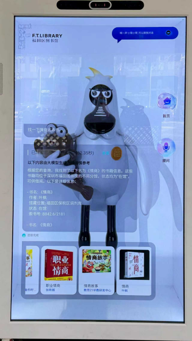 深圳市福田区图书馆2003年首创以区馆为中心的 “总分馆制”,现有108家基层馆,但存在读者对智慧服务的期待与基层馆图书更新慢、资源分散、服务个性化不足的矛盾。为破解此问题,该馆以人工智能技术为核心,搭建 “伏羲智图” 总分馆智慧化服务体系,集成了采编AI、智能立体书库、图书物联网、阅读研发中心,并运用机器人+大数据模型实现图书自动分拣和智能调拨,形成 “图书智能加工—立体书库智能分拣—免费物流到 —‘秒级响应’阅读服务” 闭环。同时创新推出AI图书馆助手“福鹭鹭”,多渠道适配不同层级场馆,弥补基层馆员能力短板,实现服务全域同质化,形成统一集成化管理模式。体系上线后成效显著:平均借阅量同比增长23%,网借书籍周转率提高31%,人流量提升33%,已调拨图书41万册,提供16万册次免费图书到家服务,惠及全深圳读者。