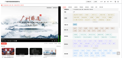 广州图书馆抓住全国智慧图书馆体系建设的机遇,建设完成广州图书馆智慧媒资管理和服务平台。平台可实现对存储在不同介质的视音频等媒体资源进行采集,对元数据描述信息、版权信息等进行统一规范和管理;通过人脸识别、语音识别、文字识别等智能技术,对视听资源内容进行识别分析,并实现对媒资内容标签标引控制,提高媒体资源的管理效率和服务能力;在对媒资内容细颗粒度标签标引的基础上,对各类资源进行重新聚类,实现对媒资内容进行精细化、主题化、专题化分类揭示。平台可为用户通过电脑端、移动端提供精细化检索、浏览、标签标引使用等服务,方便用户准确快捷查询更为精细化的媒资内容。该实践推动图书馆从以文献检索传递为主向以满足用户对信息利用多元化需求为主的知识服务转变。