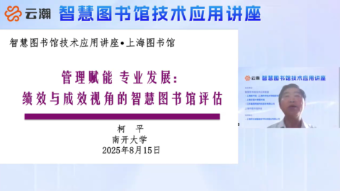 会议中心 活动中心将持续更新社区举办的讲座会议等活动内容,您可以在此查看活动信息、报名参与、收看视频回放和下载课件资料。 2025 《智慧图书馆技术应用讲座》2025年第10期 2025年9月26日 线上 精彩回顾 智慧图书馆技术应用联盟线上展览 2025年9月 线上 查看详情 《智慧图书馆技术应用讲座》2025年第9期 2025年8月15日 线上 精彩回顾 《智慧图书馆技术应用讲座》2025年第8期 2025年7月15日 线上 精彩回顾 《智慧图书馆技术应用讲座》2025年第7期 2025年6月19日 线上 精彩回顾 第一届智慧图书馆技术应用创新实践案例征集活动 2025年6月至11月 获奖名单 《智慧图书馆技术应用讲座》2025年第6期 2025年5月29日 线上 精彩回顾 《智慧图书馆技术应用讲座》2025年第5期 2025年5月15日 线上 精彩回顾 《智慧图书馆技术应用讲座》2025年第4期 2025年4月9日 线上 精彩回顾 《智慧图书馆技术应用讲座》2025年第3期 2025年3月21日 线上 精彩回顾 《智慧图书馆技术应用讲座》2025年第2期 2025年2月10日 线上 精彩回顾 《智慧图书馆技术应用讲座》2025年第1期 2025年1月9日 线上线下 精彩回顾 2024 AI驱动下的图书馆智慧重构分会场——上海市图书馆学会2024年学术年会 2024年12月5日 线上线下 精彩回顾 《智慧图书馆技术应用讲座》2024年第9期 2024年11月21日 线上 精彩回顾 《智慧图书馆技术应用讲座》2024年第8期 2024年10月12日 线上 精彩回顾 智慧图书馆2.0:大模型赋能未来图书馆新平台 2024年9月11日 线下 精彩回顾 《智慧图书馆技术应用讲座》2024年第7期 2024年8月30日 线上 精彩回顾 《智慧图书馆技术应用讲座》2024年第6期 2024年7月23日 线上 精彩回顾 《智慧图书馆技术应用讲座》2024年第5期 2024年6月24日 线上 精彩回顾 第七届未来智慧图书馆发展论坛暨第二十届数智图书馆前沿问题高级研讨会 2024年5月25日-27日 线下 精彩回顾 《智慧图书馆技术应用讲座》2024年第4期 2024年4月16日 线上 精彩回顾 《智慧图书馆技术应用讲座》2024年第3期 2024年3月26日 线上 精彩回顾 《智慧图书馆技术应用讲座》2024年第2期 2024年2月23日 线上 精彩回顾 《智慧图书馆技术应用讲座》2024年第1期 2024年1月18日 线上 精彩回顾 2023 《智慧图书馆技术应用讲座》2023年第10期 2023年12月27日 线上 精彩回顾 上海市图书馆学会2023学术年会智慧图书馆人工智能应用探讨分会场 2023年12月20日 线上线下 精彩回顾 《智慧图书馆技术应用讲座》2023年第9期 2023年11月20日 线上 精彩回顾 《智慧图书馆技术应用讲座》2023年第8期 2023年10月16日 线上 精彩回顾 “新的生态与超越:共创图书馆的智慧未来”——2023中国图书馆学会年会分论坛 2023年9月15日 线下 精彩回顾 《智慧图书馆技术应用讲座》2023年第7期 2023年8月15日 线上 精彩回顾 《智慧图书馆技术应用讲座》2023年第6期 2023年7月19日 线上 查看回顾 《智慧图书馆技术应用讲座》2023年第5期 2023年6月28日 线上 查看回顾 《智慧图书馆技术应用讲座》2023年第4期 2023年5月26日 线上 查看回顾 《智慧图书馆技术应用讲座》2023年第3期 2023年4月26日 线上 查看回顾 智慧 包容 超越:走向元宇宙的图书馆3.0 2023年3月1日至3日 线上线下 查看回顾 《智慧图书馆技术应用讲座》2023年第2期 2023年2月15日 线上 查看回顾 《智慧图书馆技术应用讲座》2023年第1期 2023年1月19日 线上 查看回顾 2022 《智慧图书馆技术应用讲座》2022年第10期 2022年12月21日 线上 查看回顾 《智慧图书馆技术应用讲座》2022年第9期 2022年11月25日 线上 查看回顾 《智慧图书馆技术应用讲座》2022年第8期 2022年10月25日 线上 查看回顾 《智慧图书馆技术应用讲座》2022年第7期 2022年9月15日 线上 查看回顾 《智慧图书馆技术应用讲座》2022年第6期 2022年8月15日 线上 查看回顾 新时代,新势力——2022世界开放图书馆联盟亚太会议暨中国云瀚社区年会 2022年7月15日 线上 查看回顾 《智慧图书馆技术应用讲座》2022年第5期 2022年6月15日 线上 查看回顾 《智慧图书馆技术应用讲座》2022年第4期 2022年5月23日 线上 查看回顾 《智慧图书馆技术应用讲座》2022年第3期 2022年3月23日 线上 查看回顾 《智慧图书馆技术应用讲座》2022年第2期 2022年2月22日 线上 查看回顾 《智慧图书馆技术应用讲座》2022年第1期 2022年1月17日 线上 查看回顾 2021 《智慧图书馆技术应用讲座》2021年第6期 2021年12月15日 线上 查看回顾 《智慧图书馆技术应用讲座》2021年第5期 2021年11月15日 线上 查看回顾 《智慧图书馆技术应用讲座》2021年第4期 2021年10月15日 线上 查看回顾 云瀚智享,图界华章——2021图书馆前沿技术论坛(IT4L2021) 2021年10月22日 线上线下 查看回顾 《智慧图书馆技术应用讲座》2021年第3期 2021年9月26日 线上 查看回顾 《智慧图书馆技术应用讲座》2021年第2期 2021年8月16日 线上 查看回顾 《智慧图书馆技术应用讲座》2021年第1期 2021年7月15日 线上 查看回顾 下一代图书馆智慧服务平台研讨暨长三角智慧阅读圆桌会议 2021年4月23日 线上线下 查看回顾 2020 智慧、开放、包容的第三代图书馆服务平台研讨会 2020年9月24日 线上线下 查看回顾